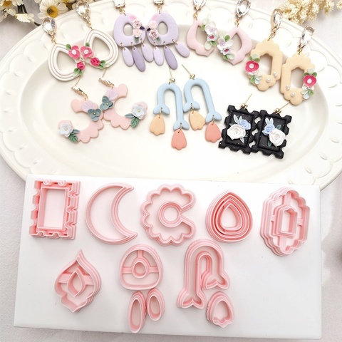 8Pcs Unique Shaped Polymer Clay Moldes Clay Cutting Moldes Ferramentas para DIY Brinco Jóias Ornamentos Handmade